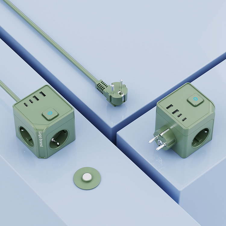 This power strip features 3 AC outlets, 2 USB-A, and 2 Type-C ports with a 1.5m cable, offering versatile charging options for commercial use.